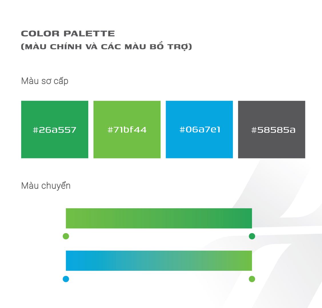 Hai dải màu chuyển (Blue → Light Green, Dark Green → Light Green) mang đến sự linh hoạt, hiện đại và trẻ trung trong ứng dụng.